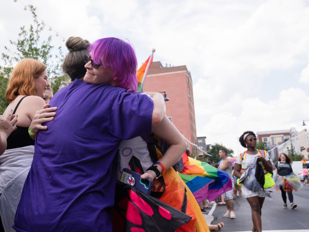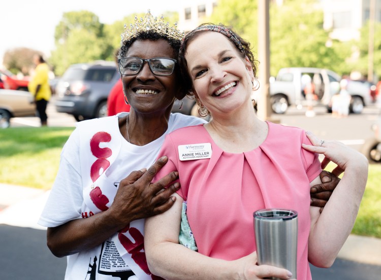 Danielle, a mother at E.L.I.’s house, shares a moment with Lindsey Doyle during the LV Mommy Makeover weekend at E.L.I.’s House on Saturday, July 29, 2023. Photo/Sarah White