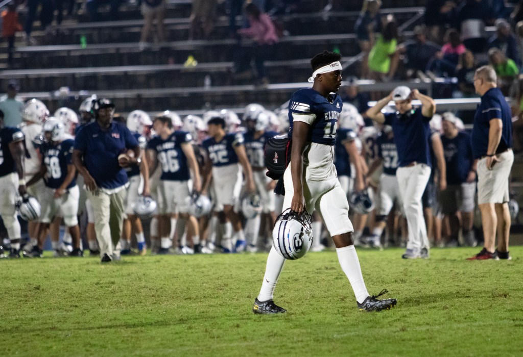 An Elbert County football player walks off the field at the Granite Bowl on Friday, October 1, 2021. Elbert County lost their homecoming game to visitor Haralson County. (Photo/Sarah White, saw86124@uga.edu)