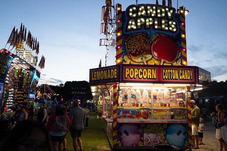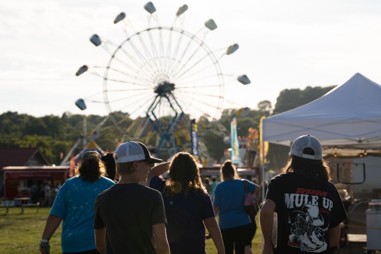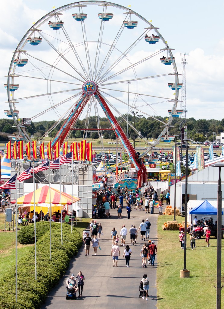 Visitors walk through the fair grounds at the Georgia National Fair in Perry, Ga. on Saturday, Oct. 9, 2021.