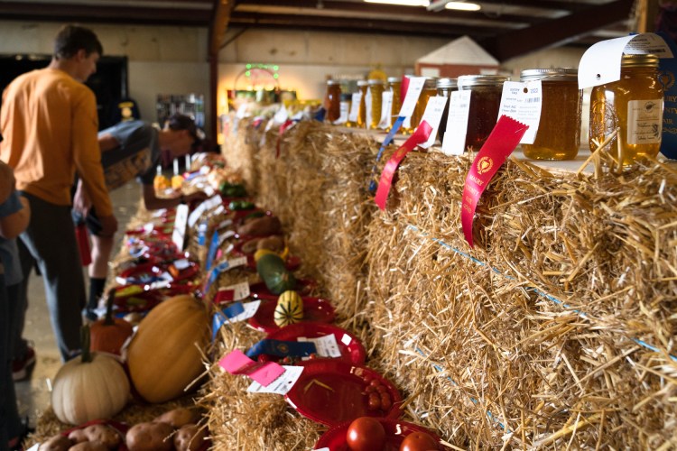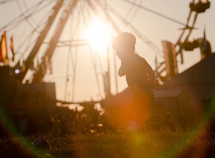 Jagger Collier, from Perry, runs to pick up his toy at the Georgia National Fair in Perry, Ga. on Saturday, Oct. 9, 2021. The Collier family visits the fair annually, but came on this day to celebrate the birthday of Jagger’s dad, Josh Collier.