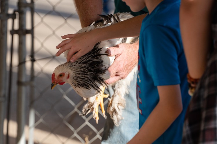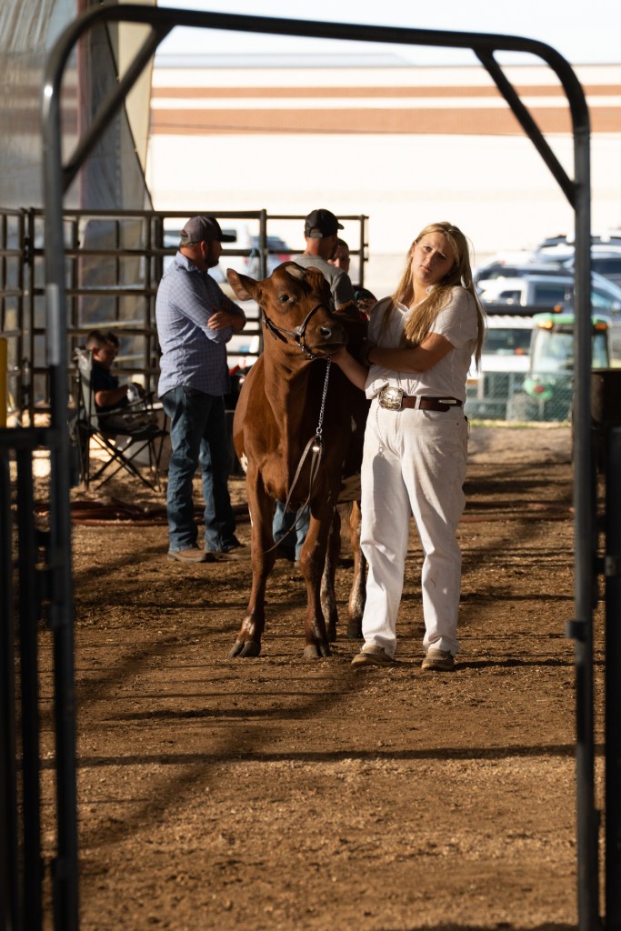 Terra Southerland holds her goat Bailey on a bench at the Georgia State Fair on Saturday Oct. 9, 2021. This year was Southerland’s fourth year competing in the livestock competition; she and Bailey placed 12th.