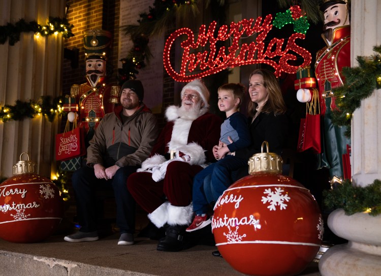 Danny, Lukas and Lindsay Ray (left to right) get their photo with Santa Claus at the Franklin Christmas Tree Lighting on the Square event on Friday, Dec. 2, 2022. The Ray’s live in Nashville but visited the tree lighting with their friends who are Franklin locals.
