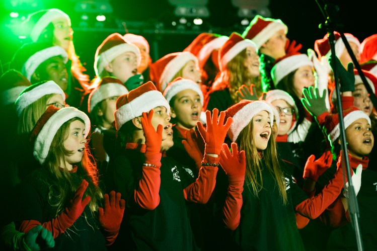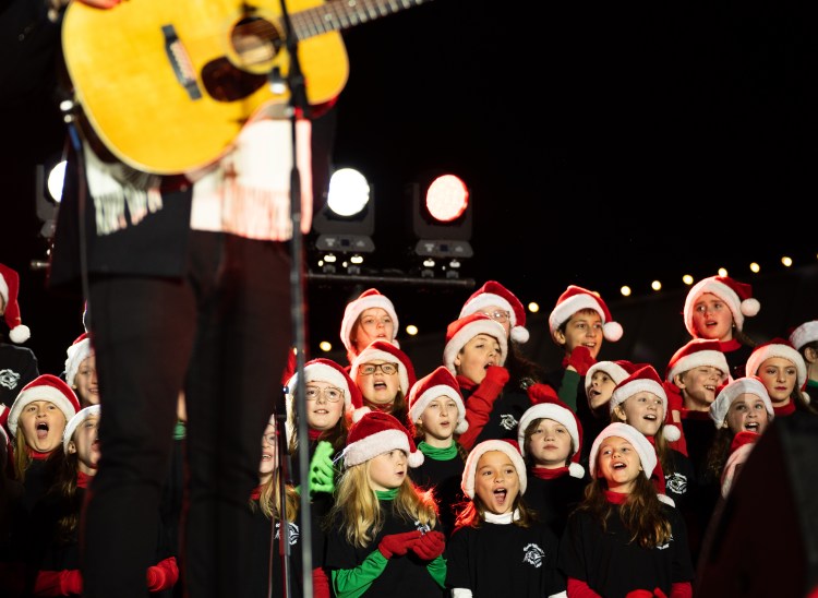 The Freedom Intermediate School choir sings in support of Matthew West’s performance at the Franklin Christmas Tree Lighting on the Square event on Friday, Dec. 2, 2022.