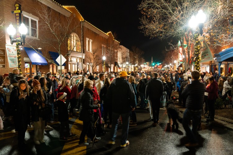 Crowds move through main street after the Franklin Christmas Tree Lighting on the Square event on Friday, Dec. 2, 2022.