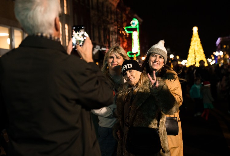 Bianca Monika, Sandy Michaels and Laural Sterling pose for a photo at the Franklin Christmas Tree Lighting on the Square event on Friday, Dec. 2, 2022. The trio respresents two of the three generations of their family present at the event. The local family has been coming to the Franklin tree lighting for as many years as they have lived in Franklin.