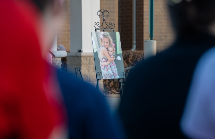 A picture of Evelyn and her sister sits outside High Hopes at a candlelight vigil held for Evelyn Dieckhaus on Thursday, Mar. 20, 2023 in Franklin, Tn. Photo/Sarah White