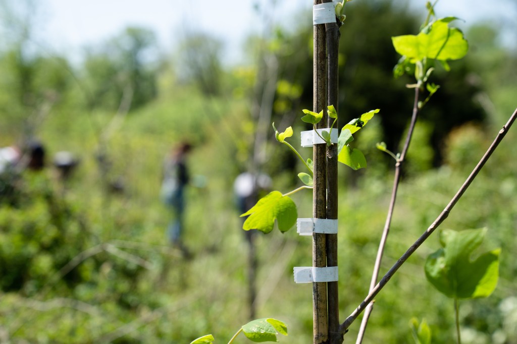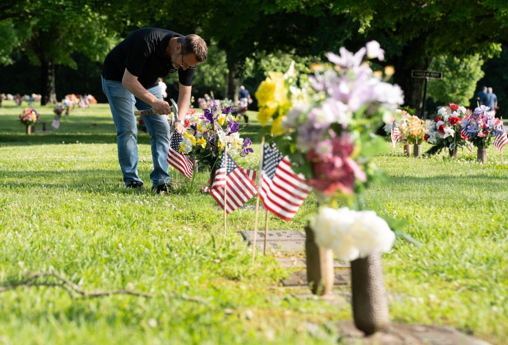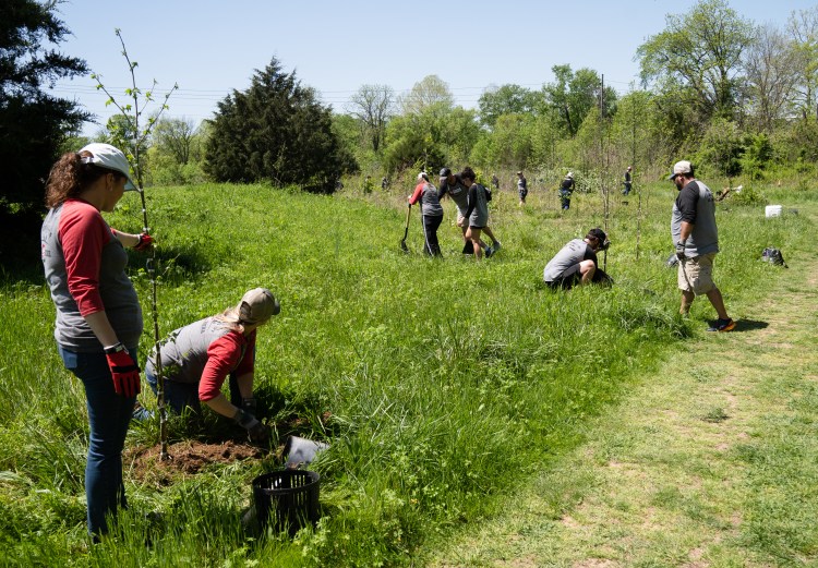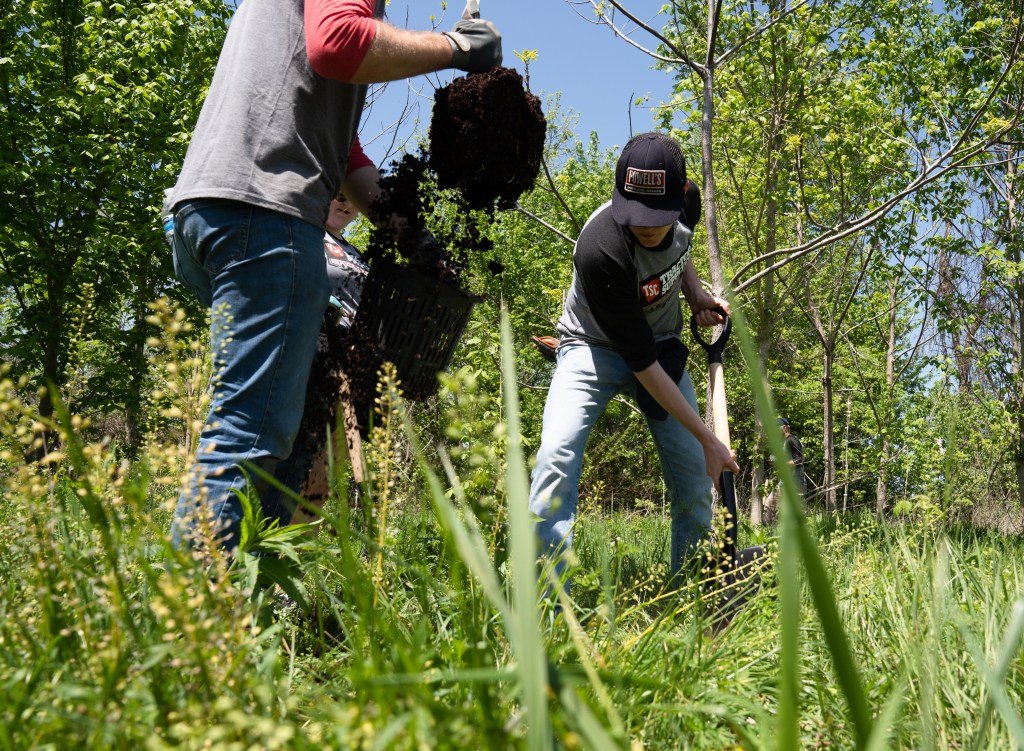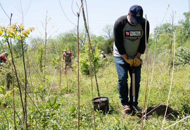 Steve Simpson digs a hole for a tree at the Friends of Franklin Parks spring Volunteer Day on Tuesday, April 18, 2023. Photo/Sarah White