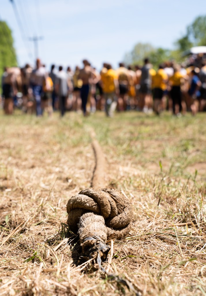The rope rests on the gorund after the competition at Battleground Academy’s 84th annual tug-of-war competition over the Harpeth River on Tuesday, April 25, 2023. Photo/Sarah White