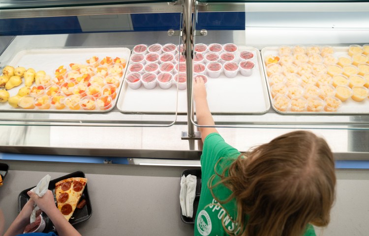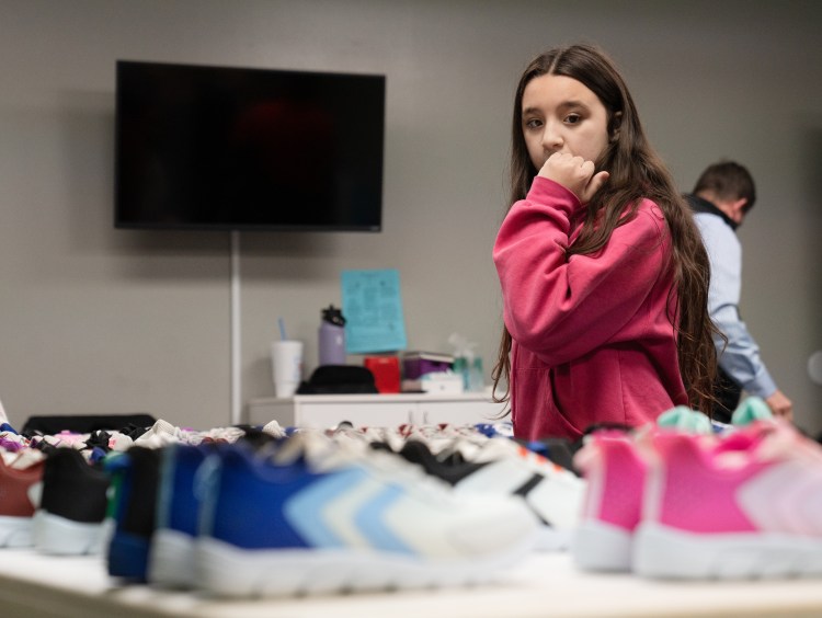 A student surveys her shoe options at a collaborative event between Subaru Waltrip, Operation Warm, Graceworks and Franktown Open Hearts to give shoes to local children in need on Tuesday, Jan. 14, 2025.