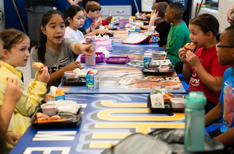 A student tries on her new shoes at a collaborative event between Subaru Waltrip, Operation Warm, Graceworks and Franktown Open Hearts to give shoes to local children in need on Tuesday, Jan. 14, 2025.