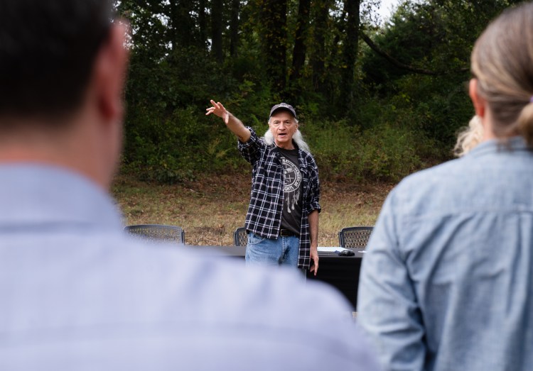 Toye Heap explains the history of the area at the signing of the conservation easement to protect the Glass Mounds historic Indigenous site at Westhaven Golf Club on Monday, Oct. 9, Indigenous Peoples’ Day, 2023.