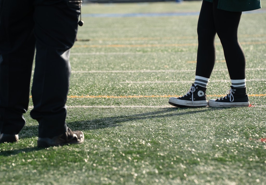 A pair of heels sit on a ledge at the Elbert County Granite Bowl on Friday, October 1, 2021. The night was Elbert County High School’s homecoming game. (Photo/Sarah White, saw86124@uga.edu)