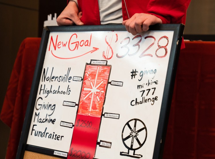 Sam Simonsen and Sofi Jensen complete two 777 challenges by purchasing two of each donatable item in the Giving Machines on Sunday, Dec. 10, 2023.