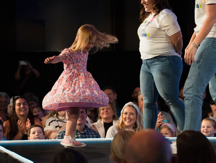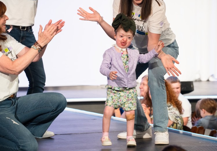 Charlotte walks the catwalk on Sunday, April 14, 2024 at Runway of Hope, High Hopes Development Center’s annual fashion-show fundraiser.