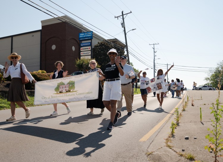 Michelle Jenkins writes down her group’s ideas for preservation actions needed in town at the Heritage Foundation’s Preserve Williamson Nolensville Town Hall discussion on Monday, June 24, 2024.