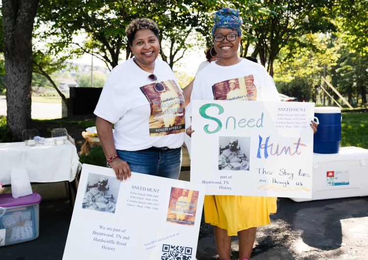 Attendees write down their ideas for preservation actions that can taken in Nolensville at the Heritage Foundation’s Preserve Williamson Nolensville Town Hall discussion on Monday, June 24, 2024.