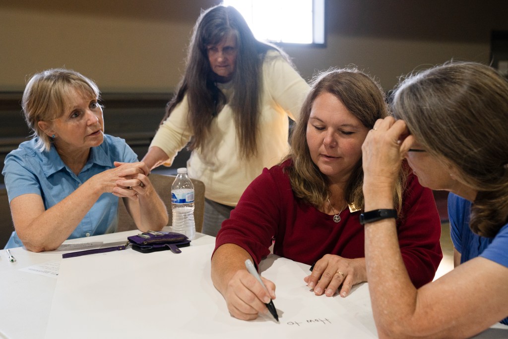 Nolensville Mayor Halie Gallik listens to ideas from her group at the Heritage Foundation’s Preserve Williamson Nolensville Town Hall discussion on Monday, June 24, 2024.