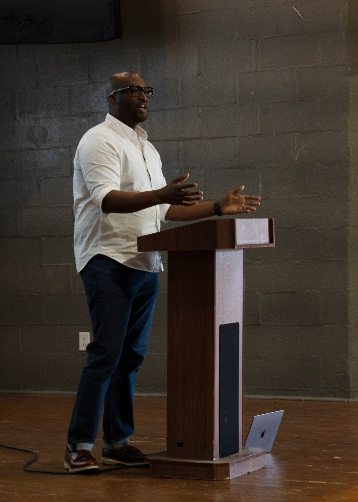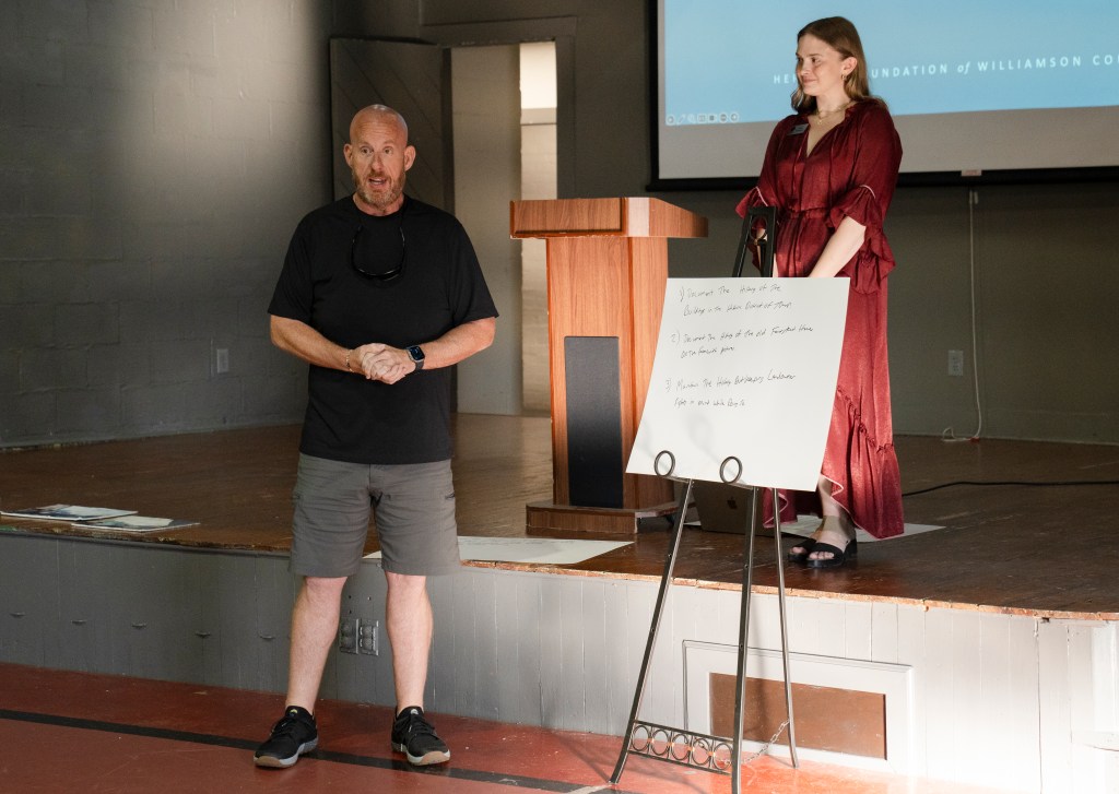 Tyler Carpenter presents his group’s ideas at the Heritage Foundation’s Preserve Williamson Nolensville Town Hall discussion on Monday, June 24, 2024.