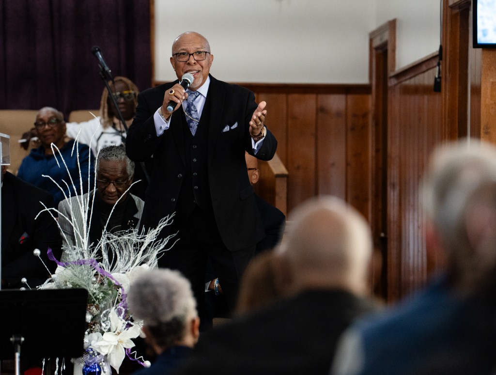 Bishop Bobby Sanders leads a sermon at the MLK Day celebration at First Missionary Baptist Church in Franklin on Monday, jan. 20, 2025.