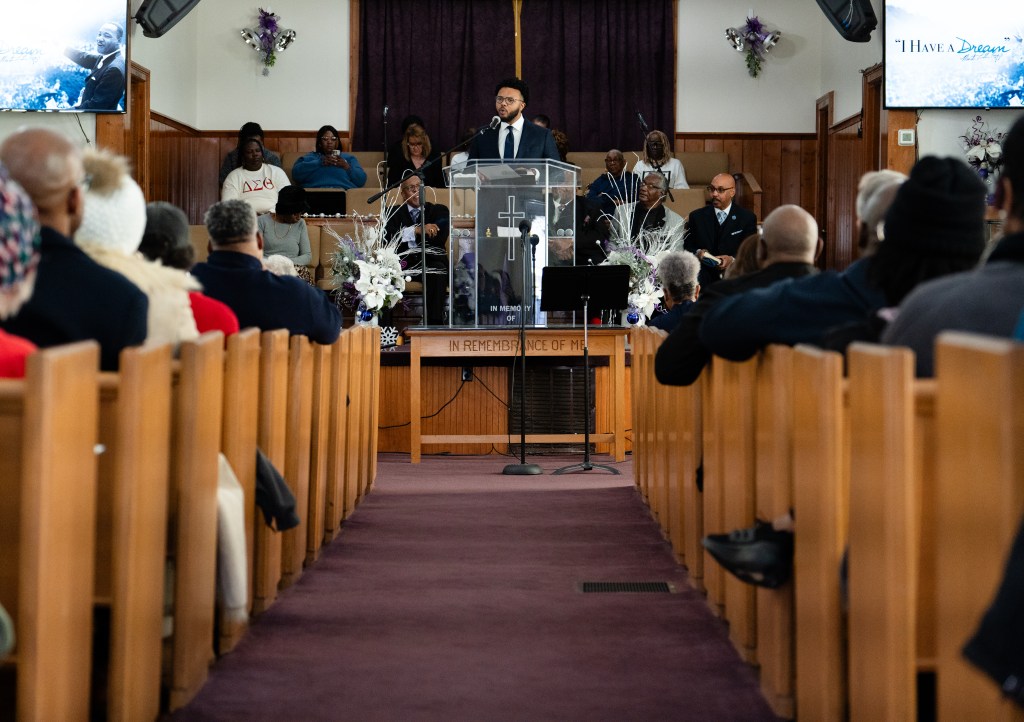 Pastor D. A. Archie II leads a sermon at the MLK Day celebration at First Missionary Baptist Church in Franklin on Monday, jan. 20, 2025.