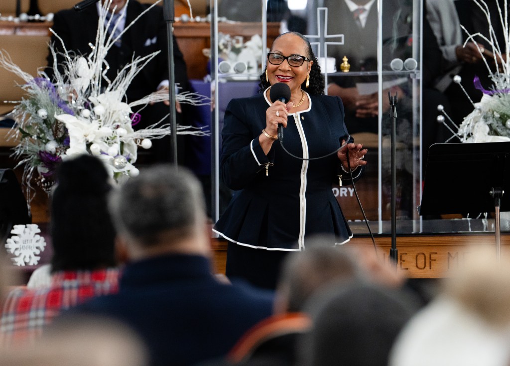 Denise Hambrick speaks at the MLK Day celebration at First Missionary Baptist Church in Franklin on Monday, jan. 20, 2025.